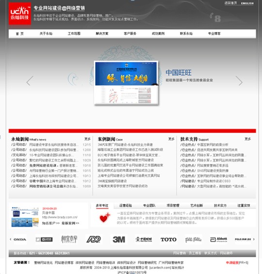 打开永灿的网站,第一眼看到的是我们的公司标志,旁边用较大的文字醒目标识:专业网站建设@网络营销,我们期望从这里让访问者知道我们是做什么的