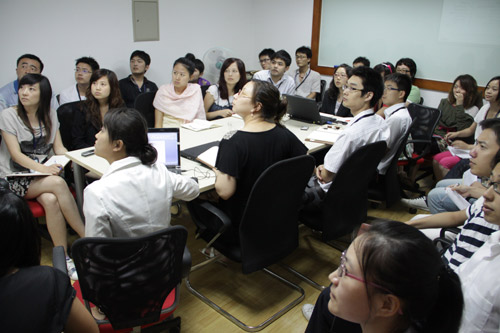 全神贯注的看资料,一会就要讨论建一个好网站到底关键点在哪里喽!